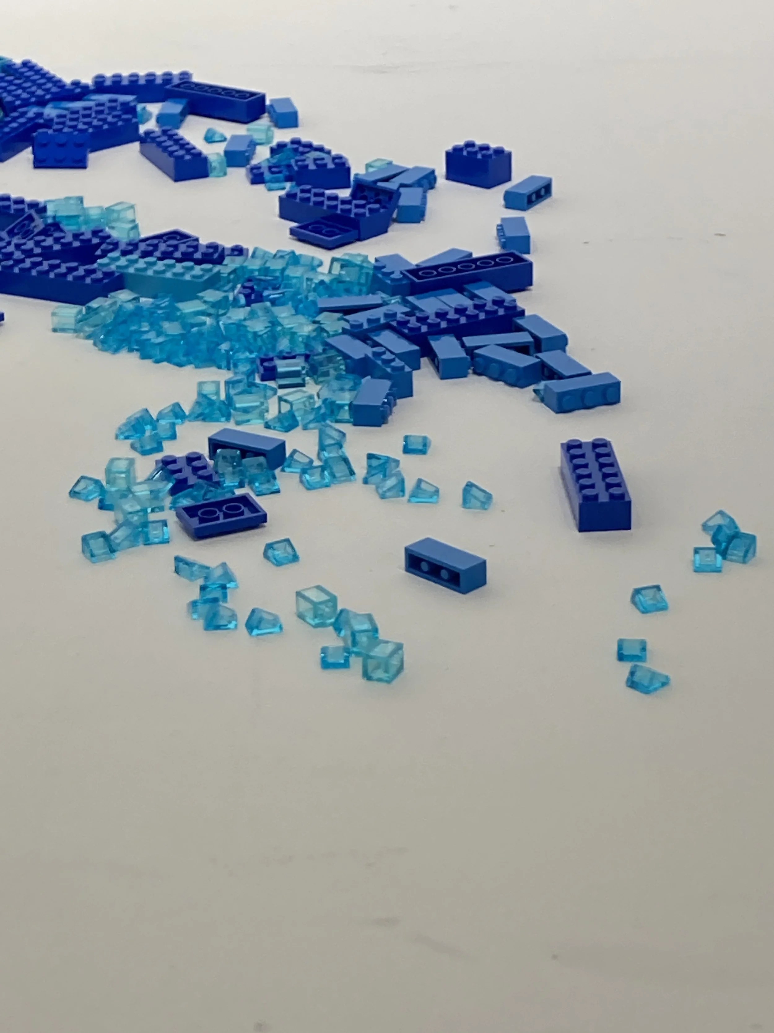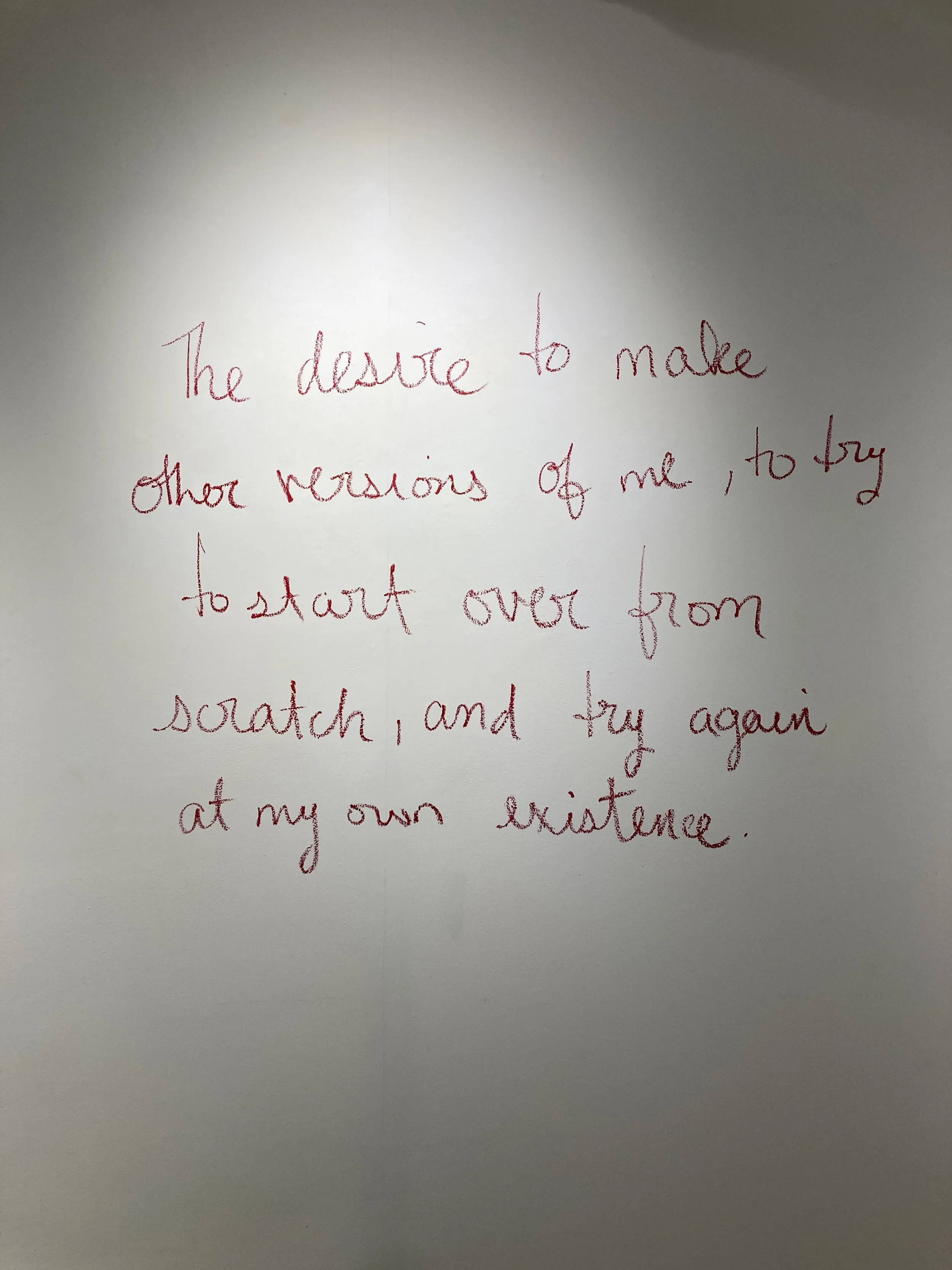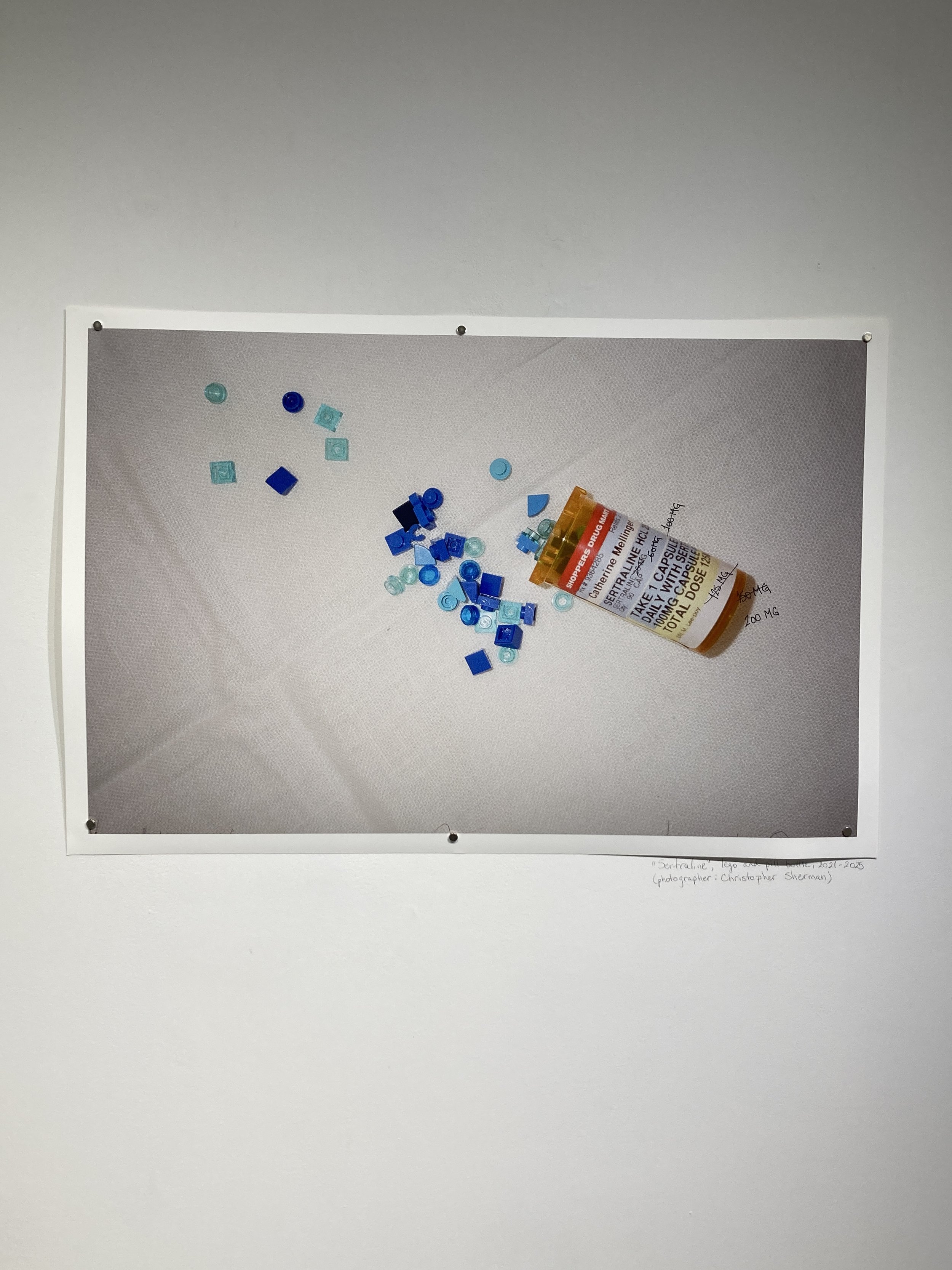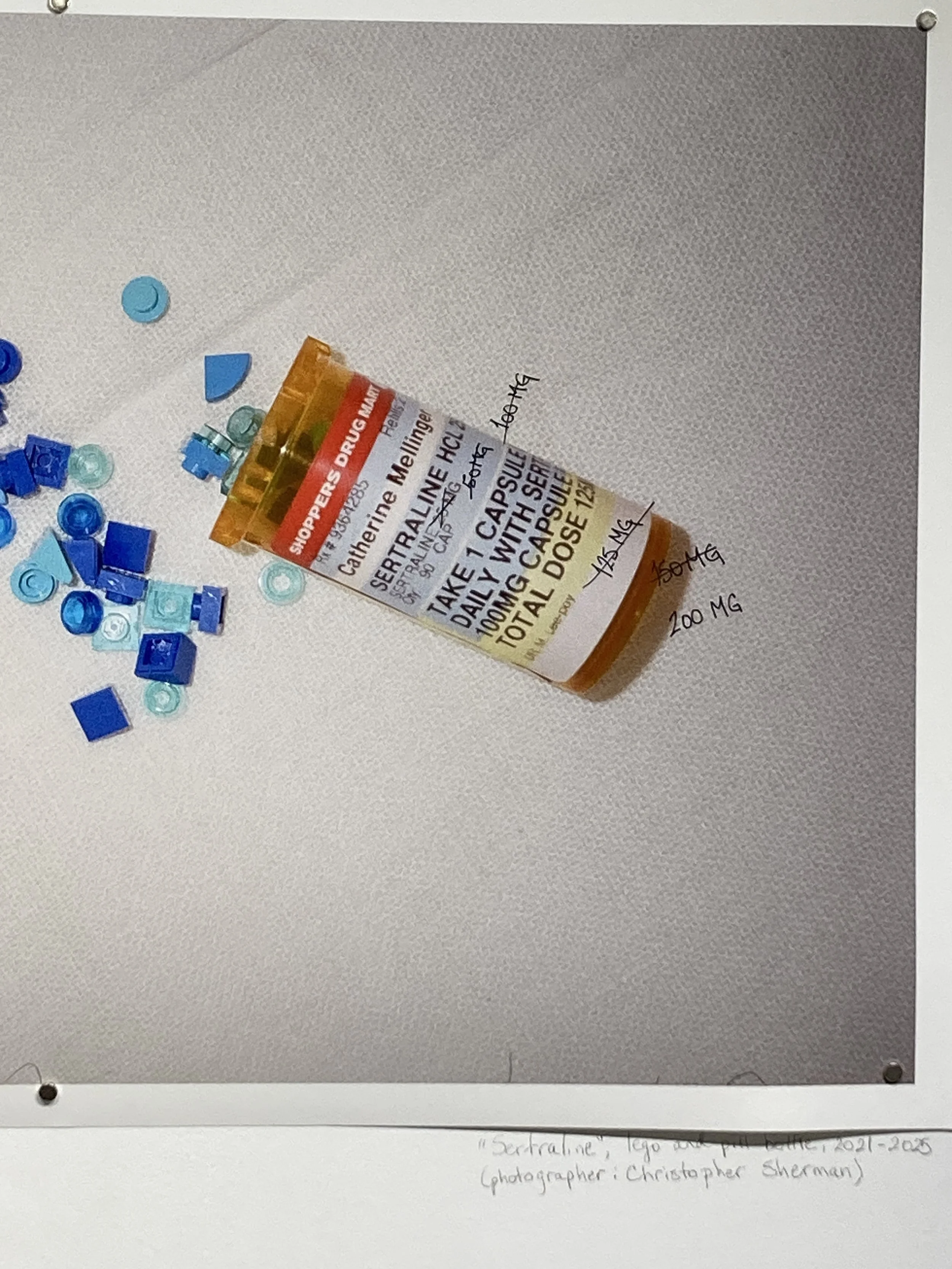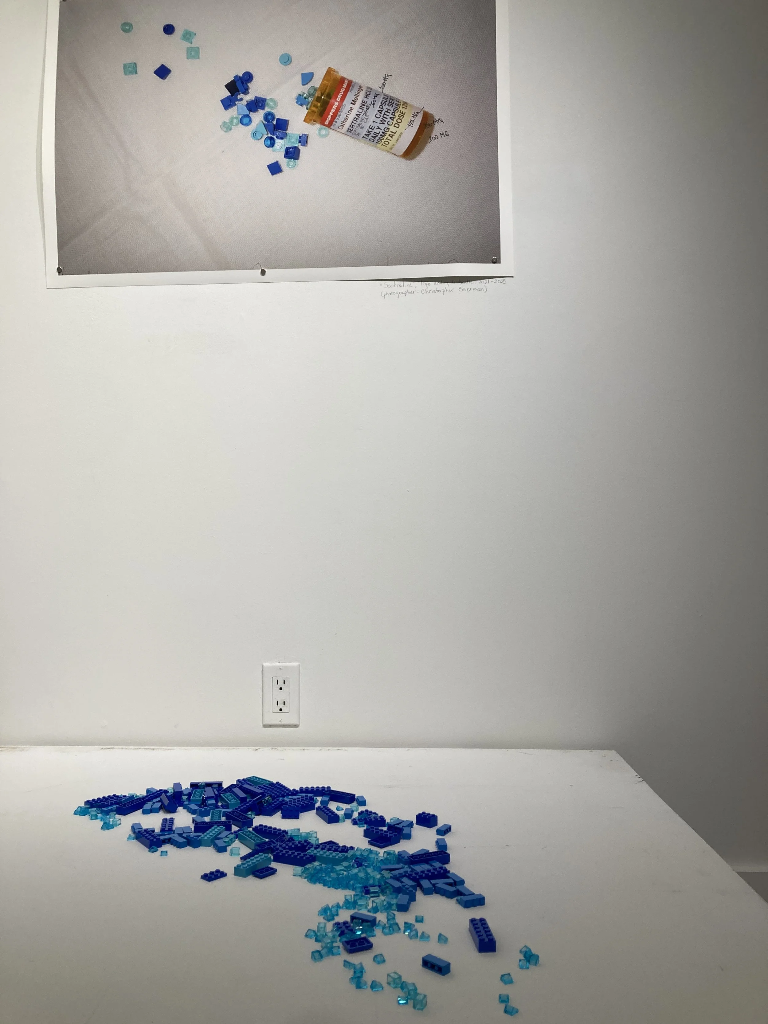 These works are digital collage, and when exhibited include lego installation as well as written text on walls using lipstick. Wall writing offers a metaphor for the scribing of new experiences on my interior being, while giving a feeling of scribbled marker on walls at the hands of tiny humans. Drawings from my children offer fantastical characters, elements of invited friction, and stand as place keepers for mental illness and invisible disability made whimsically visible. Linguistic nods to D.W. Winnicott, and a red stained lip all become toys for play.